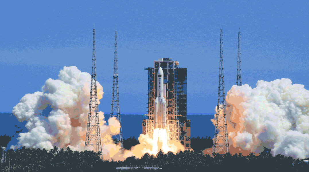 长五B火箭一飞冲天,为梦想燃烧自己